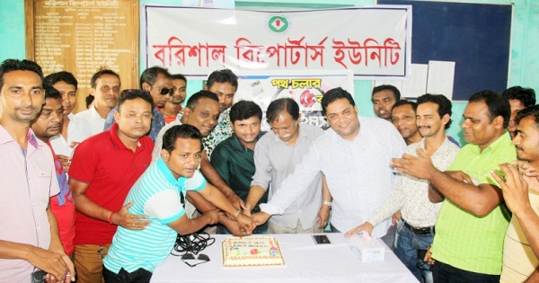 আলোচনা সভা শেষে কেকে কেটে জনপ্রিয় অনলাইন নিউজপোর্টাল ঢাকা টাইমস’র প্রতিষ্ঠাবার্ষিকী উদযাপন করেন বরিশালের সাংবাদিকরা।