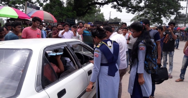 অবৈধ মোটরযান অভিযানে পুলিশকে শিক্ষার্থীদের সহযোগিতা
