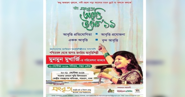 ‘শুধু অকারণে পুলকে, নদী-জলে পড়া আলোর মতন ছুটে যা ঝলকে ঝলকে’- এই স্লোগানে অনুষ্ঠিত হতে যাচ্ছে অষ্টম সংবৃতা আবৃত্তি উৎসব-২০১৯।
