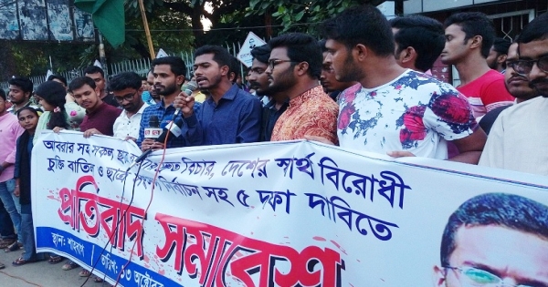 আবরারসহ সব ছাত্রহত্যার দ্রুত বিচারসহ পাঁচ দফা দাবিতে প্রতিবাদ সমাবেশেটি আয়োজন করে বাংলাদেশ সাধারণ ছাত্র অধিকার সংরক্ষণ পরিষদ।