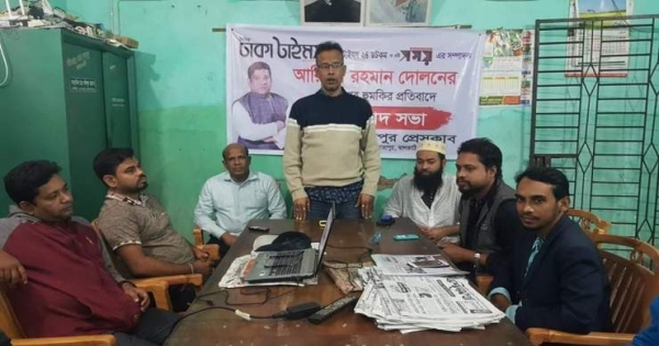 রাজাপুর প্রেসক্লাব আয়োজিত প্রতিবাদ সভায় সভাপতিত্ব করেন দৈনিক ঢাকাটাইমস রাজাপুর প্রতিনিধি এমকে আলম।