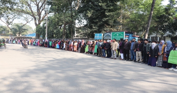যশোর বিজ্ঞান ও প্রযুক্তি বিশ্ববিদ্যালয়ের শিক্ষার্থীরা নিরাপদ সড়কের দাবিতে মঙ্গলবার যশোর সড়ক ও জনপথ কার্যালয়ের সামনে মানববন্ধন করেছেন। প্রধান ফটকের সামনে গতিরোধক তৈরিসহ আন্দোলনরত শিক্ষার্থীদের সব দাবি মেনে নিয়ে তা দ্রুত বাস্তবায়নের আশ্বাস দিয়েছেন সহকারী প্রকৌশলী শহিদুল ইসলাম।