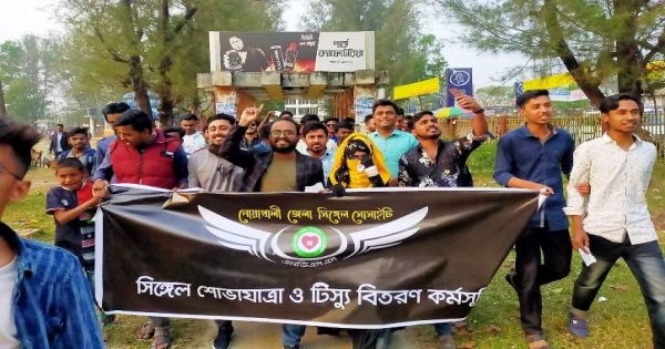 ‘প্রেম করব না, টেনশন নিবো না’ স্লোগানকে সামনে রেখে নোয়াখালীতে শোভাযাত্রা ও টিস্যু বিতরণ করেছে জেলা সিঙ্গেল সোসাইটি (এনডিএসএস)। কর্মসূচির আওতায় একাধিক প্রেমে যুক্তদের প্রলয়লীলা দেখা মাত্র বাকি প্রেমিক বা প্রেমিকার কাছে সংবাদ পাঠানো, হাতেনাতে ধরা খাওয়ার প্রক্রিয়া সম্পন্ন করা, একাধিক সম্পর্কে যুক্তদের সিঙ্গেল করার জন্য যুপোপযোগী ব্যবস্থা করা।