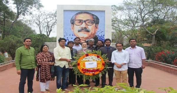 বঙ্গবন্ধুর প্রতিকৃতিতে শাবি শিক্ষক সমিতির শ্রদ্ধাঞ্জলি
