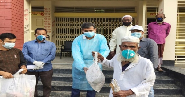 এসময় সামাজিক দুরত্ব বজায় রেখে ৬২টি পরিবারের সদস্যদের হাতে পাঁচ কেজি চাল, দুই কেজি আলু, এক কেজি ডাল, এক কেজি তেল, এক কেজি লবণ ও একটি করে সাবান তুলে দেন সাংসদ।