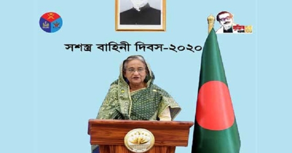 আজ সশস্ত্র বাহিনী দিবস-২০২০ উপলক্ষে ভাষণে প্রধানমন্ত্রী তিন বাহিনীর সদস্যসহ দেশবাসীকে শুভেচ্ছা জানান।