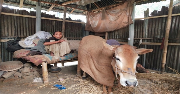 গরুর ঘরে বৃদ্ধা শান্তি রানীর বসবাস