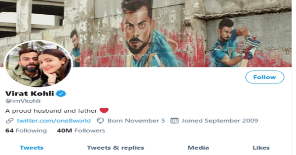ক্রিকেটার নন, ভারতীয় ক্রিকেট দলের অধিনায়ক নন। এখন তিনি শুধু এক জন ‘গর্বিত স্বামী এবং বাবা’। এমনটাই লিখলেন টুইটার প্রোফাইলে।