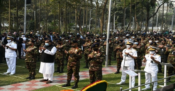 আরও শ্রদ্ধা জানান স্বরাষ্ট্রমন্ত্রী আসাদুজ্জামান খান, সেনাবাহিনী প্রধান জেনারেল আজিজ আহমেদ, ভারপ্রাপ্ত নৌবাহিনী প্রধান রিয়ার এডমিরাল এম আবু আশরাফ, বিমান বাহিনী প্রধান এয়ার চিফ মার্শাল মাসিহুজ্জামান সেরনিয়াবাত, বর্ডার গার্ড বাংলাদেশের মহাপরিচালক মেজর জেনারেল সাফিনুল ইসলাম।