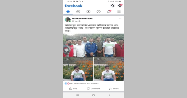 ফয়েজ বিশ্বাসের আইডি থেকে পোষ্ট করা সেলফিতে দেখা যায়, ওসি মোস্তাফিজ ও ফয়েজ হাস্যোজ্জল। ফয়েজ পোস্টে লিখেছেন, ‘একজন সৎ পুলিশ অফিসার, স্যার আপনার হাতেই নিরাপদ আমাদের বাউফল। স্যারের জন্য অনেক অনেক শুভ কামনা।’