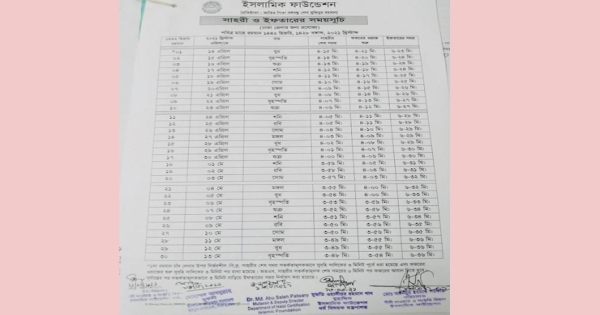 ইসলামিক ফাউন্ডেশনের সেহেরি ও ইফতারের সময়সূচি প্রকাশ