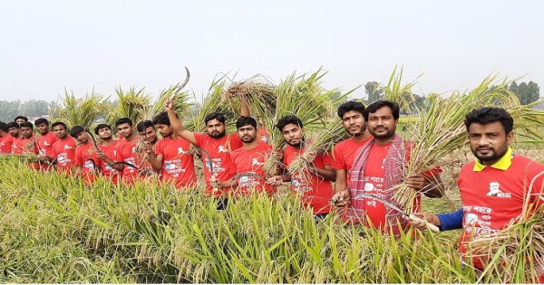 চলনবিলের পাঁচ কৃষকের ধান কেটে দিল ছাত্রলীগ