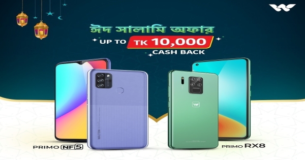 বছর ঘুরে আবার আসছে ঈদুল ফিতর। ঈদ মানেই খুশি, ঈদ মানেই আনন্দ। তাই ক্রেতাদের ঈদের আনন্দ বাড়িয়ে দিতে ওয়ালটন মোবাইল দিচ্ছে বিশেষ ‘ঈদ সালামি’। এর আওতায় ওয়ালটন ‘প্রিমো আরএক্সএইট’ এবং ‘প্রিমো এনএফফাইভ’ মডেলের স্মার্টফোন কিনলেই থাকছে ১০ হাজার টাকা পর্যন্ত নিশ্চিত ক্যাশব্যাক।