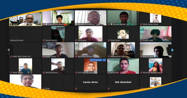 প্রোগ্রামিং ক্যাম্পের সমাপনী অনুষ্ঠানের শুরুতে অংশ নেয়া শিক্ষার্থীরা তাদের নিজেদের অভিজ্ঞতা বিনিময় করে।