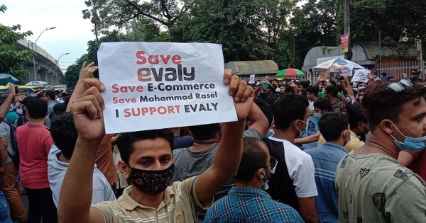 তাদের হাতের প্ল্যাকার্ডে ও ব্যানারে লেখা ছিল সেভ ইভ্যালি, সেভ ই-কমার্স, আই সাপোর্ট ইভ্যালিসহ নানা স্লোগান।