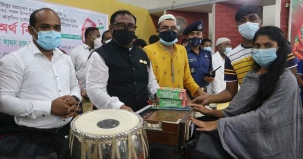 অনুষ্ঠানে ছয়টি কিশোর কিশোরী ক্লাবে সংগীত ও ক্রীড়া উপকরণ, ১০ জন দুস্থ শিল্পীর মাঝে ২৫ হাজার টাকা অনুদান, বিভিন্ন প্রতিষ্ঠানের মাঝে এক হাজার পাঁচশত ফলদ, বনজ ও ঔষধী গাছের চারা, চাষীদের মাঝে কৃষি প্রণোদনা এবং ঝড়ে ক্ষতিগ্রস্ত অসহায় দরিদ্র ব্যক্তি ও প্রতিষ্ঠানের মাঝে ঢেউটিন বিতরণ করেন।