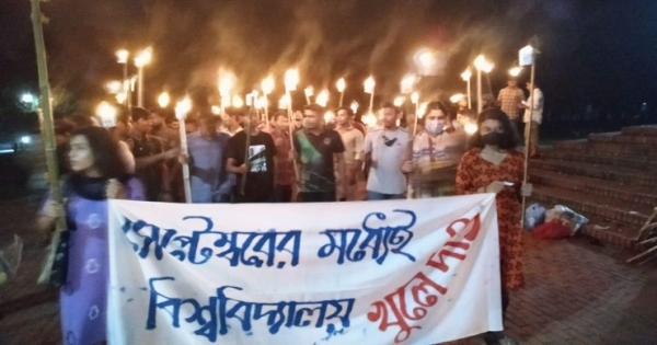 হল-ক্যাম্পাস খোলার দাবিতে জাবিতে মশাল মিছিল