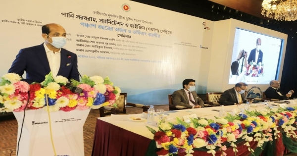 শনিবার দুপুরে রাজধানীর প্যান প্যাসিফিক সোনারগাঁওয়ের বলরুমে বঙ্গবন্ধুর জন্মশতবার্ষিকী ও স্বাধীনতার সুবর্ণজয়ন্তী উপলক্ষ্যে আয়োজিত ‘পানি সরবরাহ, স্যানিটেশন ও হাইজিন (ওয়াশ) সেক্টরে ৫০ বছরের অর্জন ও ভবিষ্যৎ করণীয়’ শীর্ষক সেমিনারে তিনি এ কথা বলেন।
