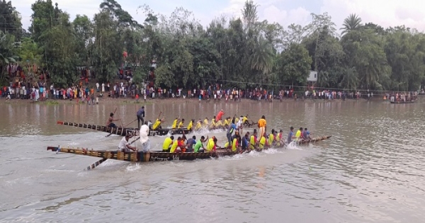 সালথার কুমার নদে ঐতিহ্যবাহী নৌকা বাইচ