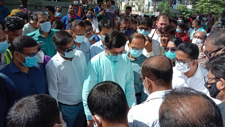 রেলমন্ত্রী নূরুল ইসলাম সুজন সহকারে শ্যামপুর শিল্পাঞ্চল পরিদর্শন করেন মেয়র তাপস। এ বিষয়ে সাংবাদিকদের এক প্রশ্নের জবাবে মেয়র বলেন, ‘আমরা প্রথম দিন থেকে বলছি, সংস্থাগুলো যখনই কোনো উন্নয়ন প্রকল্প গ্রহণ করে, তারা যেন প্রকল্প প্রণয়নের পর্যায়েই আমাদের সঙ্গে সমন্বয় করে। কিন্তু আমরা লক্ষ্য করি, প্রকল্প বাস্তবায়নের শেষ পর্যায়ে গিয়ে আমাদের উপর বিভিন্নভাবে চাপিয়ে দেওয়ার চেষ্টা করা হয়। আপনারা লক্ষ্য করেছেন- আমরা আজকে প্রথমেই পদ্মা সেতুর রেল সংযোগ সড়ক প্রকল্পের একতরফা কিছু কার্যক্রমের কারণে শ্যামপুর শিল্পাঞ্চলের স্বাভাবিক জলপ্রবাহ বাধাগ্রস্ত হচ্ছে। ফলে শ্যামপুর শিল্পাঞ্চলের পুরোটাই প্লাবিত হয়ে গেছে।’