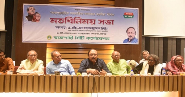 সোমবার বিকেলে রাজশাহী নগর ভবনের সিটি হলরুমে আয়োজিত সভায় বক্তারা এসব কথা বলেন। তারা অসাম্প্রদায়িক গণতান্ত্রিক বাংলাদেশের অগ্রযাত্রা অব্যাহত রাখতে মুক্তিযুদ্ধের পক্ষের শক্তিকে ঐক্যবদ্ধ থাকার আহ্বান জানান। রাজশাহী সিটি করপোরেশন (রাসিক) মেয়রের উদ্যোগে ‘অসাম্প্রদায়িক গণতান্ত্রিক সমাজের করণীয়’ শীর্ষক এ মতবিনিময় সভা অনুষ্ঠিত হয়।