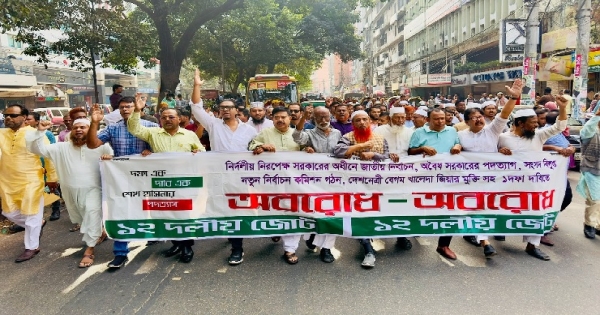 রবিবার দুপুরে শেখ হাসিনার পদত্যাগ, রাজবন্দিদের মুক্তি ও তত্ত্বাবধায়ক সরকারের অধীনে জাতীয় নির্বাচনের দাবিতে ১২ দলীয় জোটের অবরোধের পক্ষে একটি বিক্ষোভ মিছিল জাতীয় প্রেসক্লাব থেকে বের হয়ে বিজয়নগর ঘুরে পল্টন মোড়ে এসে সংক্ষিপ্ত সমাবেশে এসব কথা বলেন তারা।